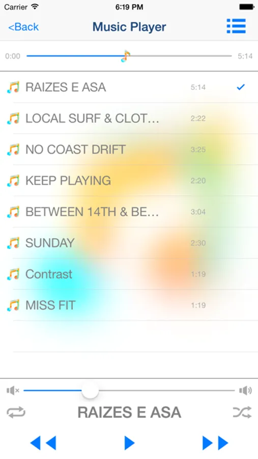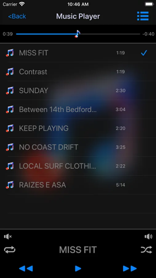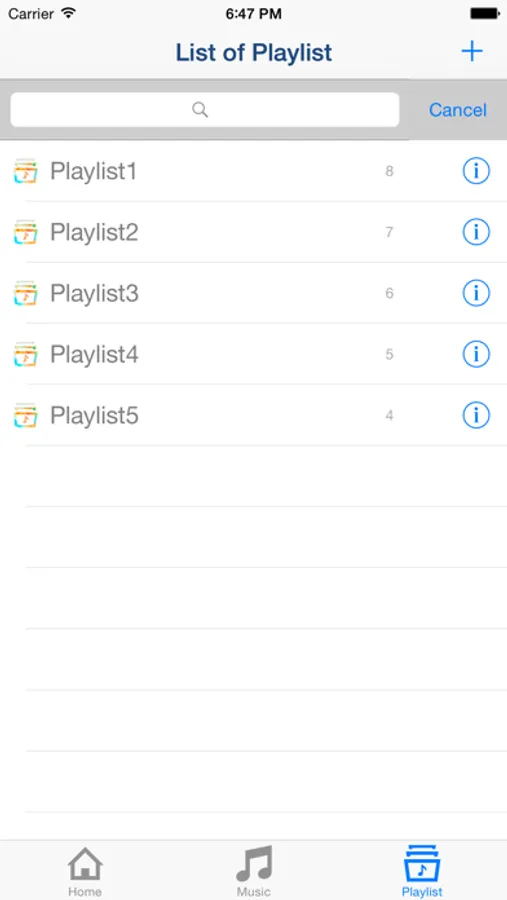 You can create playlist from the music of iTunes library and the music within this app, and you can play it together.