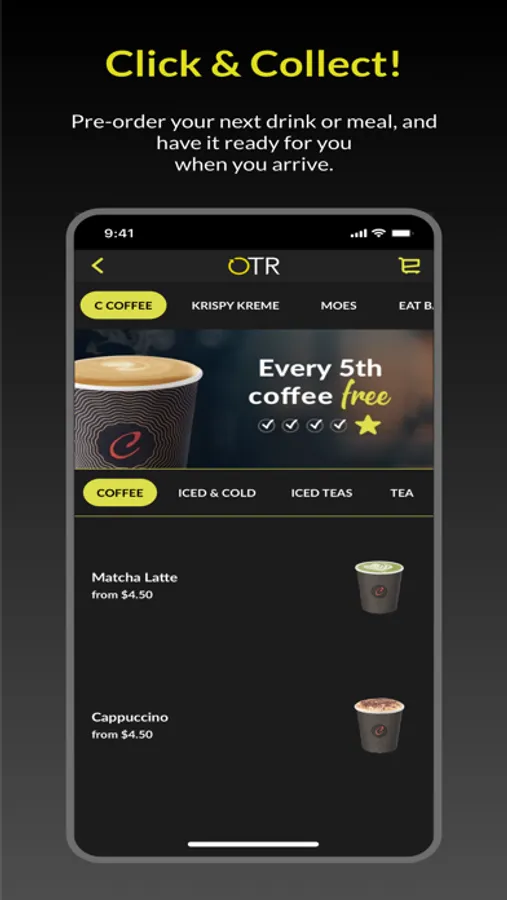 Install the OTR App today and receive your first C Coffee FREE. Made from freshly-ground coffee beans, C Coffee is your coffee, barista-made your way.