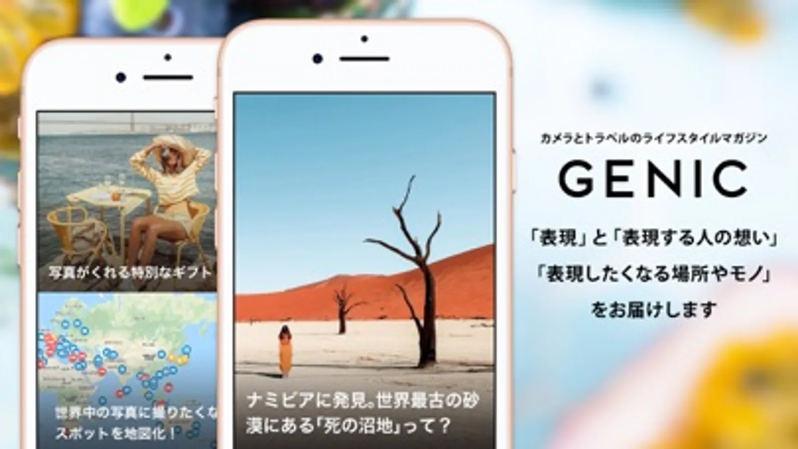 GENICは、写真を中心とした「表現」と「表現する人の想い」「表現したくなる場所やモノ」をお届けするカメラとトラベルのライフスタイルマガジンです。雑誌は、年4回発行しています。