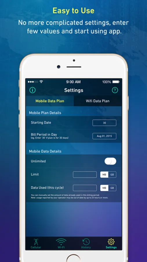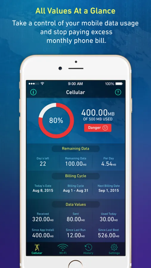 Data Usage Plus App will help you to track your data usages. Take a full control of your cellular data usage and stop paying excess monthly phone bill.