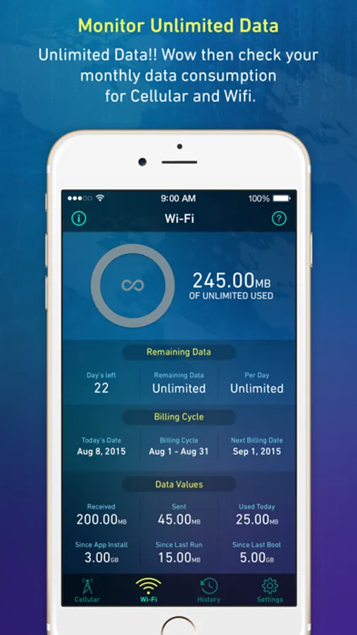 How about tracking Cellular and Wifi data on daily basis? Yes its possible with wonderful History feature.