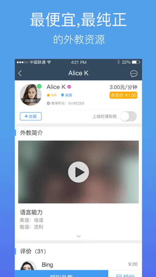 - 随时随地与外国朋友视频一对一交流