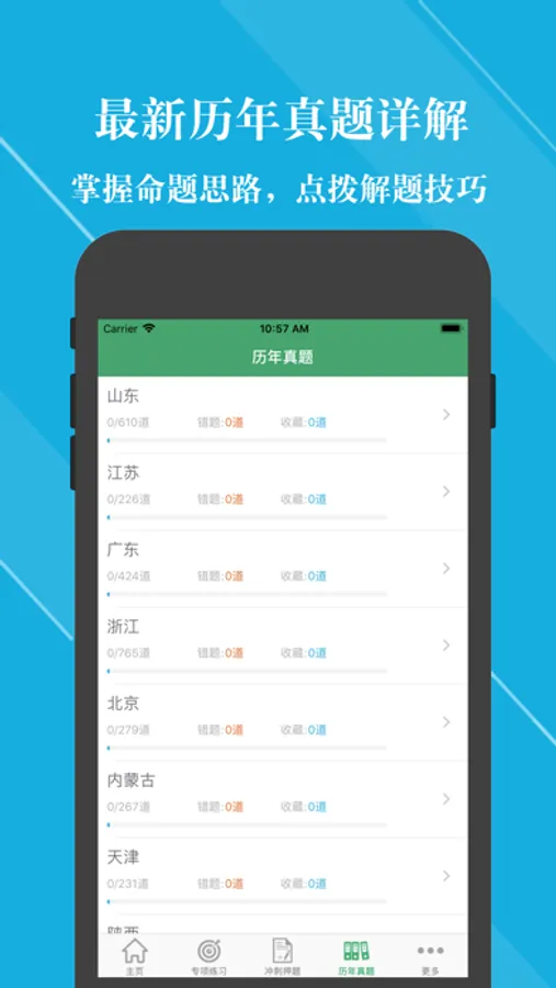 3、历史真题:精选最历年真题,上海、重庆、辽宁、福建、浙江、安徽等多个省、市。