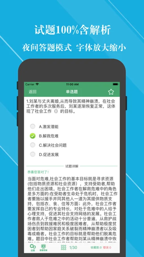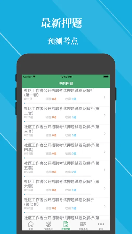 2、冲刺押题:2022年最新考试押题15套,是目前最切合社区考试的试卷。每一道题目都有详尽的解析,可选择不同题型,并可手动将易错或未牢固掌握的题加入复习库和错题库,以便反复练习。