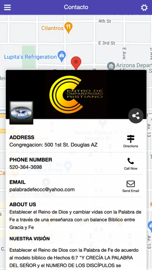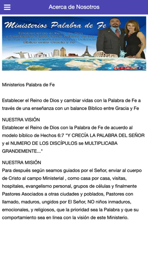 Acerca de Nosotros, Contactanos, Mapa, Sucursales, Página web, Radio en Linea, Transmisión en Vivo, Socios en la Fe, Facebook, Twitter, Video, Eventos, Tienda