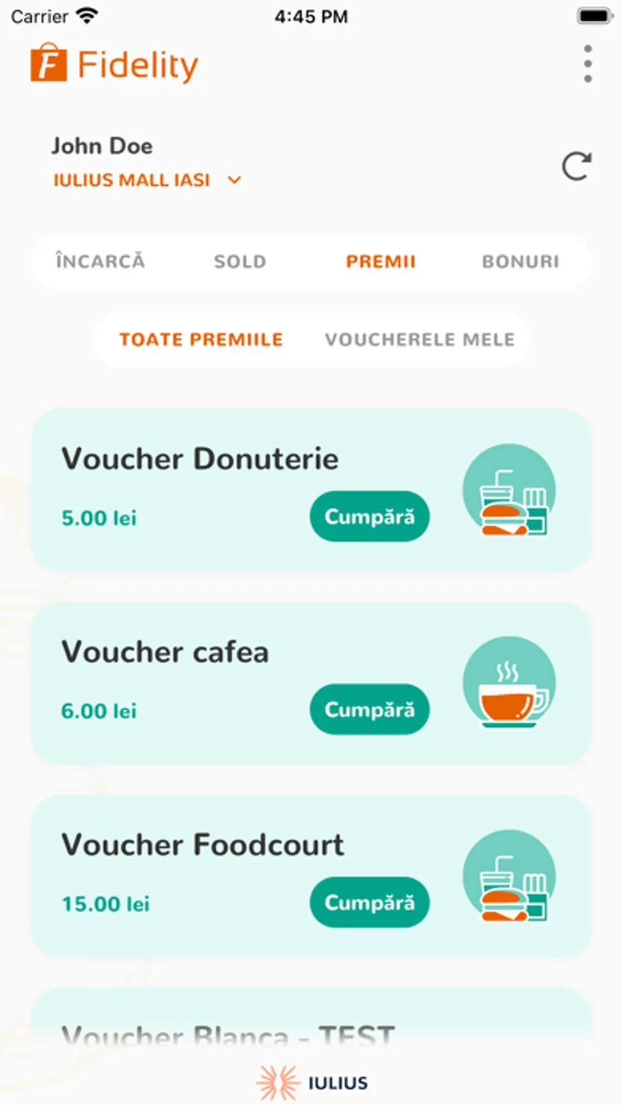 La Iulius Mall si Family Market, primesti inapoi 5% din TOT ce cumperi! Foloseste portofelul virtual pentru a achizitiona vouchere la magazine sau cec-uri cadou in valoare de 100 lei.