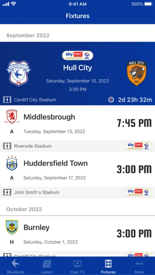 Take your club everywhere you go with the Official Cardiff City FC app which has everything you could possibly want to stay in touch with your favourite team — fixtures, live match updates, breaking news, tables, and player profiles.