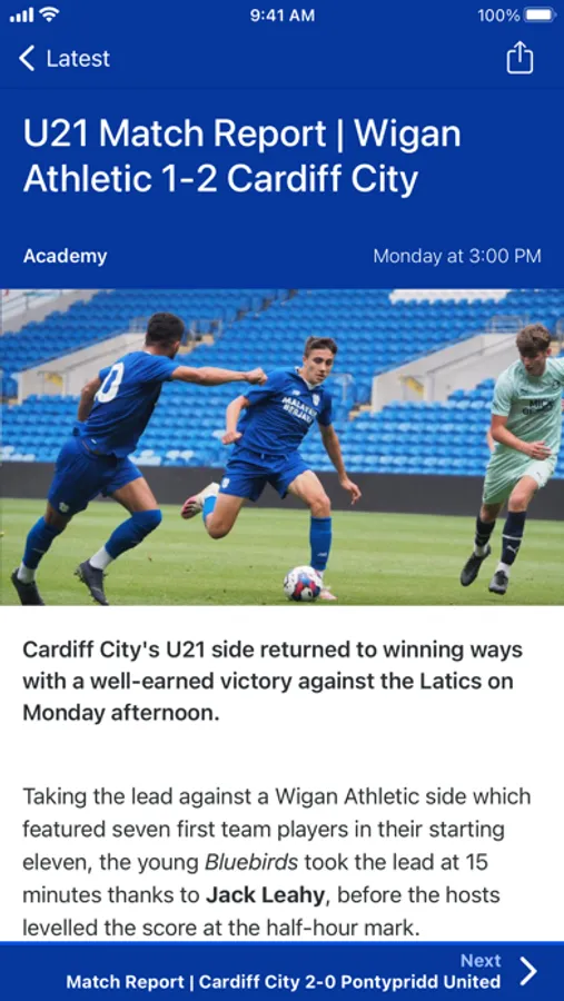• Live match centre with up to date scores, text commentary, and stats for every Cardiff match.