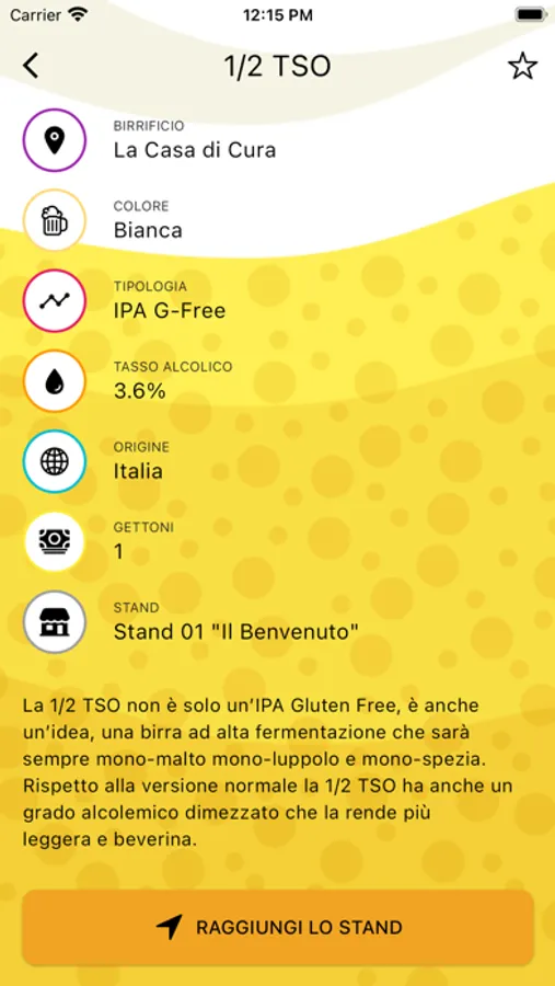 "Castellalto Festival" è la App ufficiale del Festival delle Birre di Castellalto, grazie alla quale potrai navigare tra i vari stands, scoprirne le birre erogate, avere per ogni birra una scheda dettagliata con le caratteristiche tecnico/sensoriali. La App, grazie all'interazione col sistema GPS ti condurrà fino allo stand desiderato, oppure ti presenterà sulla base delle caratteristiche di birra ricercate, una selezione di stands e di birre che possano soddisfare le esigenze del tuo palato.