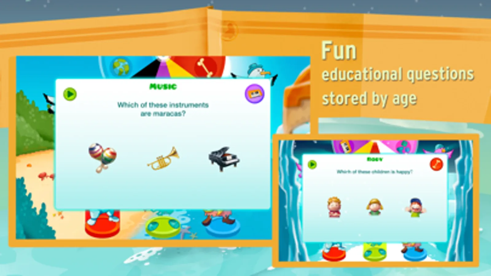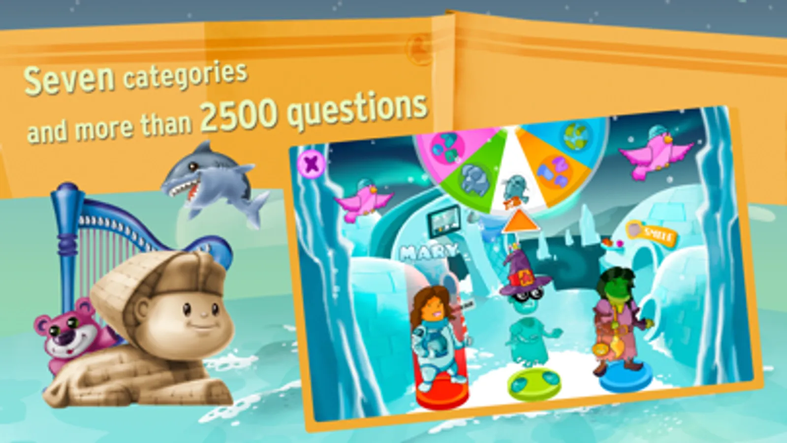 - Seven educational categories (cooking, animals, music, human body, letters, numbers and world traveler) and more than 2,500 questions.