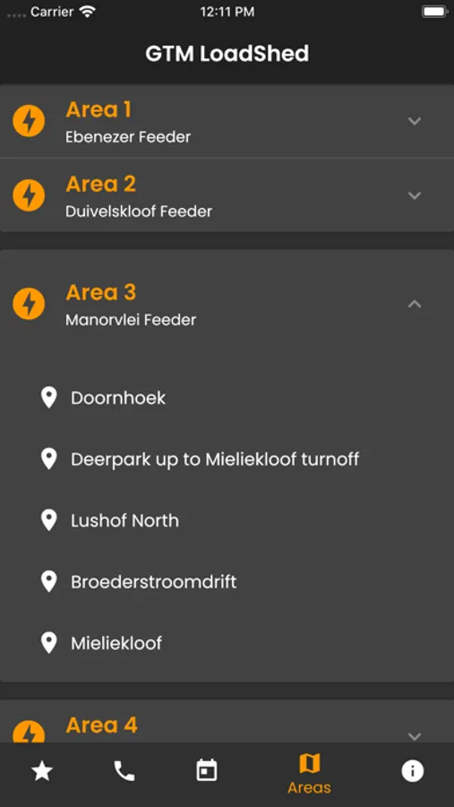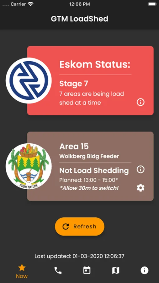 - By defining your area the app will tell you if you are subject to load shedding or not.