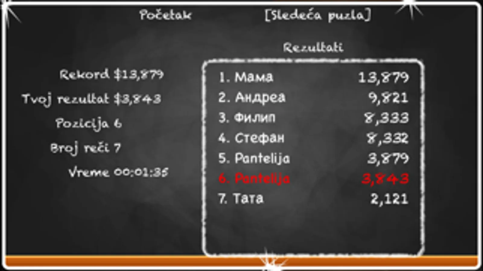 U okviru Osmosmerka iOS Aplikacije možete izabrati: