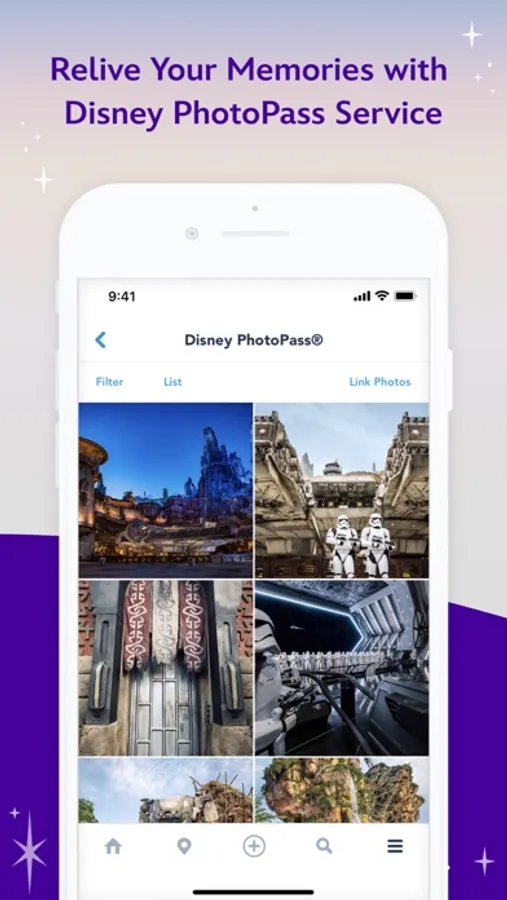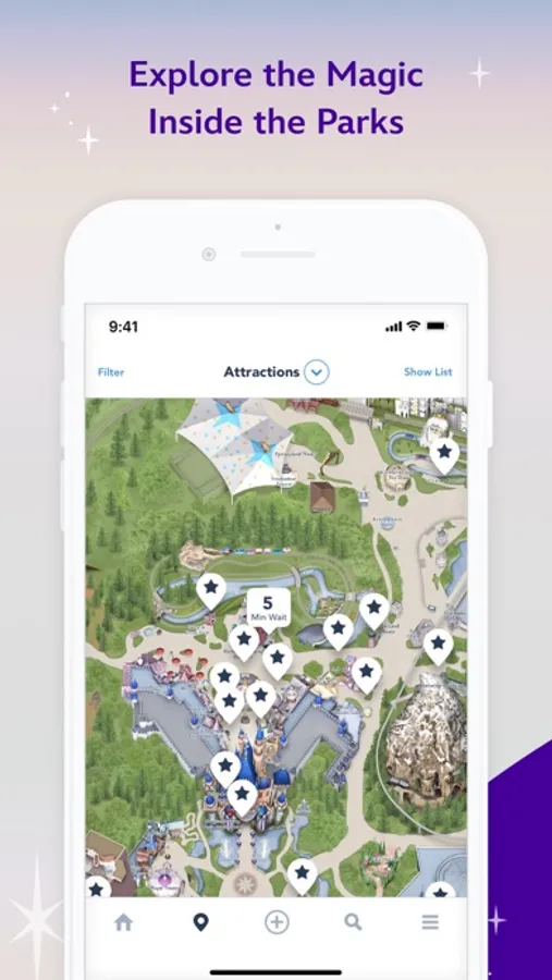 Quickly access current estimated wait times and forecasted wait times for attractions, check park hours, find Character Greetings, view showtimes and more.