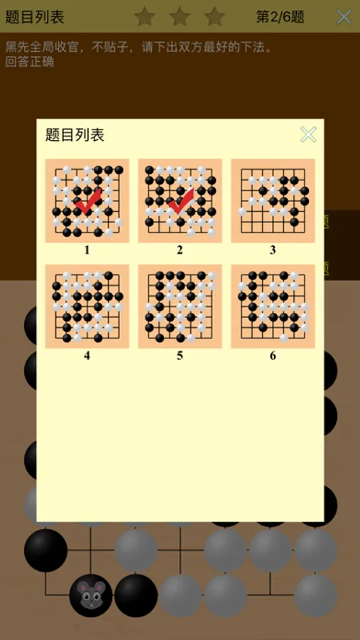 《围棋宝典官子篇》通过508道题目,全面考察用户对常见官子价值48型和官子手筋108型的掌握。适合段位前后水平的的学员。