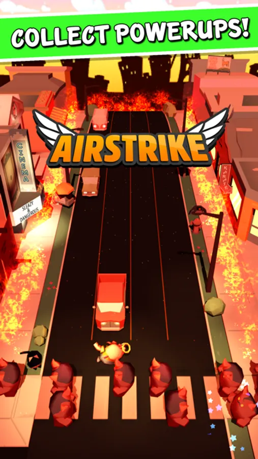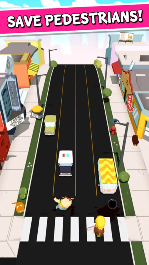 Unlock the powerful bazooka to fight back against the cars, and earn prizes to customize your game! Rescue pedestrians to learn secrets about the town while always keeping an eye out for powerups like the mighty Air Strike or the alarming Alien Abduction.