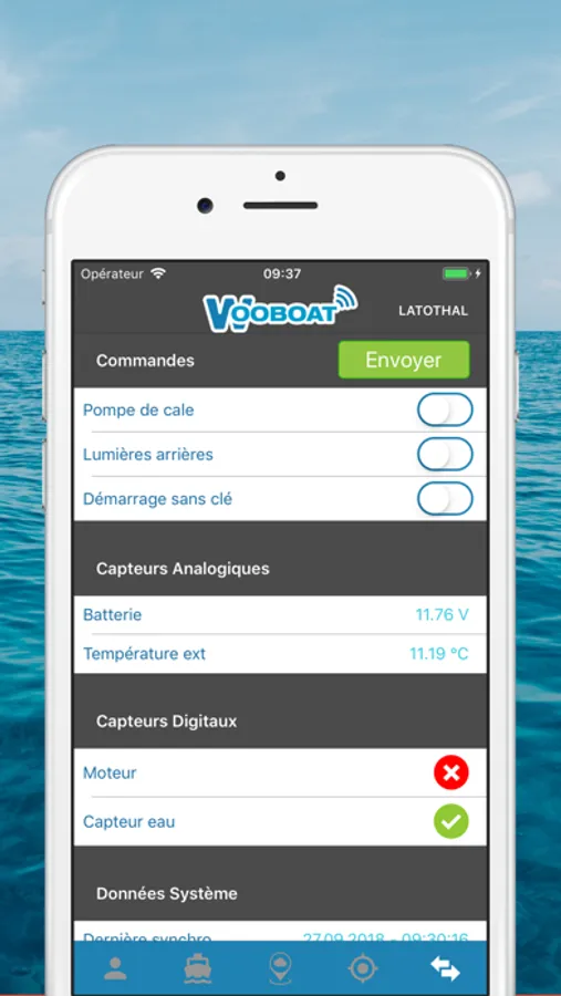 - to obtain the data onboard such as the temperature inside or outside, the battery voltage, whether a porthole is open or not, whether there is water in the bilge, etc...