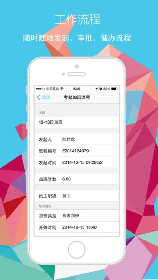 人事管理:打造“小而美”的人事管理功能,员工通过手机端进行移动考勤,领导可按照不同维度查看考勤分析,与PC端无缝结合方便HR导出统计。手机端实时查看加班、请假数据、工资条、个人资产等相关信息。