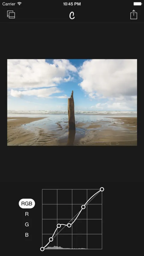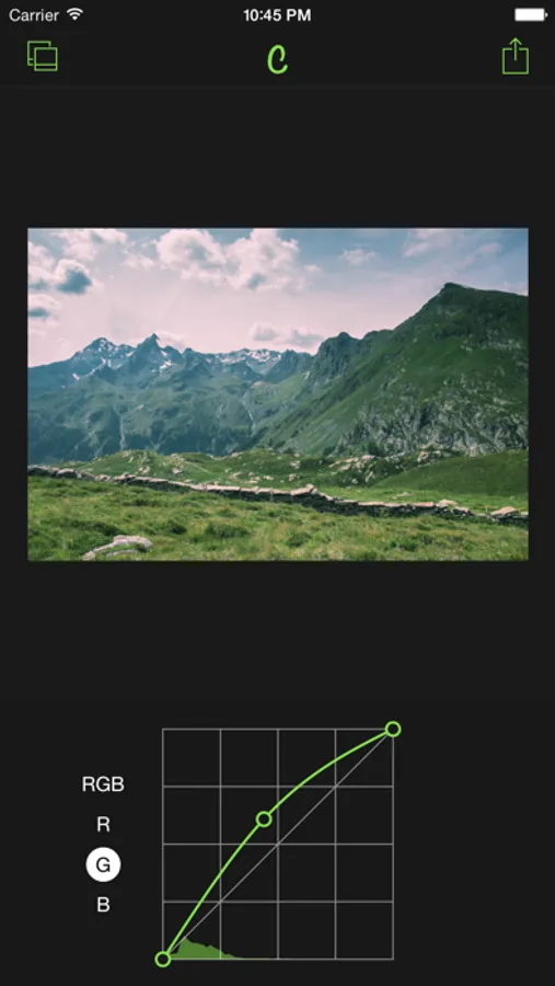 Edit colors with RGB curves either together or Red, Green and Blue separately. Curves is one of the most powerful tools when editing photos. It lets you dynamically change tone and light in images as simple as possible.