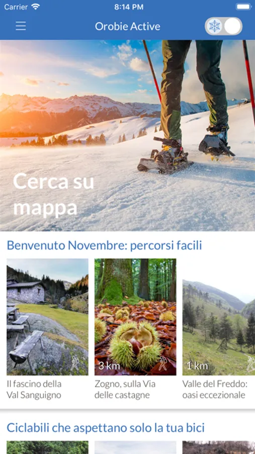 Con la app di Orobie sai sempre cosa fare e dove andare. Orobie Active è la APP che raccoglie proposte trekking, bike, con le ciaspole o gli sci ai piedi, e che consiglia sempre il percorso giusto per tutti, dagli esperti alle famiglie con bambini. Una APP innovativa con contenuti sempre nuovi, al passo con la stagione! Con il nuovo aggiornamento, infatti, la APP presenta una selezione di itinerari estivi, ma anche le nostre migliori proposte per vivere la montagna in inverno, tra ciaspolate e rifugi aperti anche a Natale.