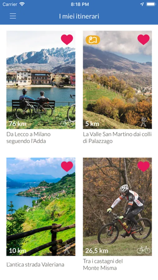 Ti interessa un percorso ma il prossimo weekend non hai tempo? La nuova sezione “i miei itinerari” raccoglie i percorsi “preferiti” e quelli che sono stati scaricati per utilizzarli offline.