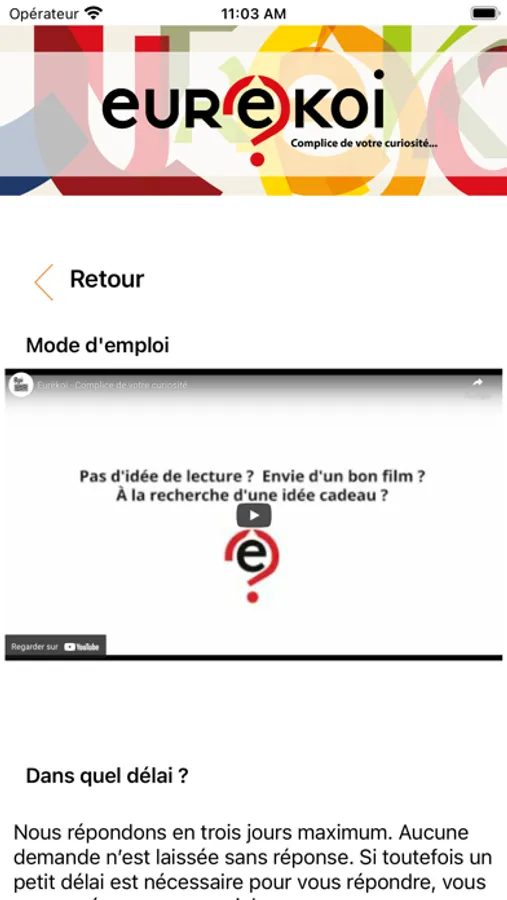 Vous pouvez nous poser toutes les questions que vous voulez dans les limites de notre Charte (par exemple, nous ne proposons pas de diagnostics médicaux ou d'analyses juridiques). Nous vous proposons aussi des conseils personnalisés sur les films, les séries TV, les livres, les albums pour enfants ou les BD en moins de 72h.