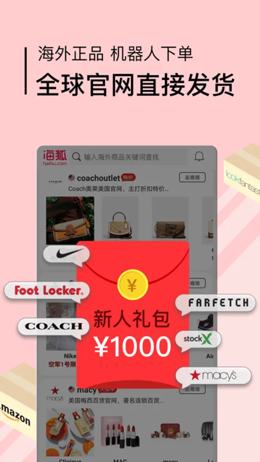 海狐海淘已经支持全球80多个热门商城,随时买到海外正品。