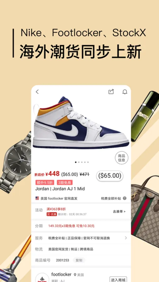 只要一键购买,再也不用担心在国外商城购买时所需的繁琐的注册、支付、转运流程,直接在海外商城为您下单,100%正品。