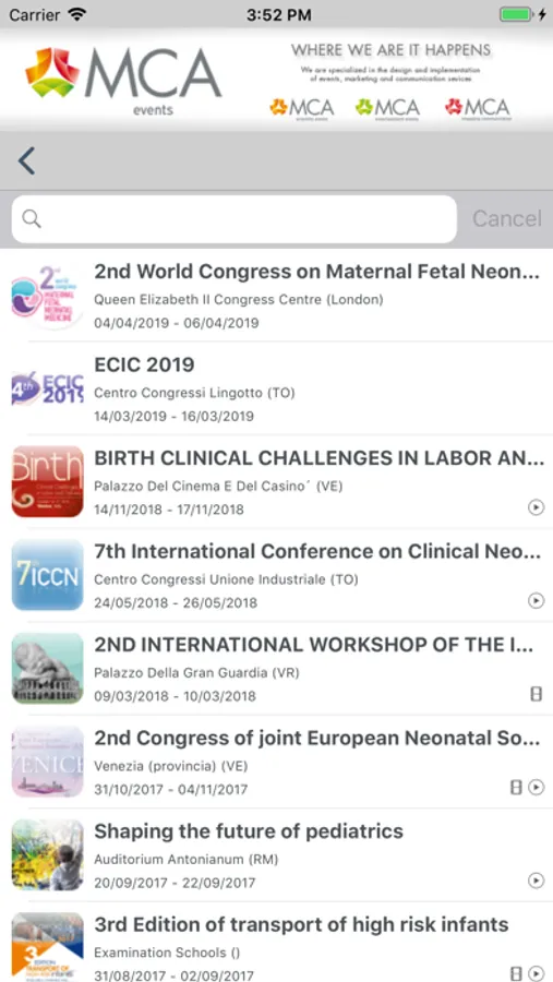 All’interno potrai trovare le app dei congressi e degli eventi organizzati da MCA Events
