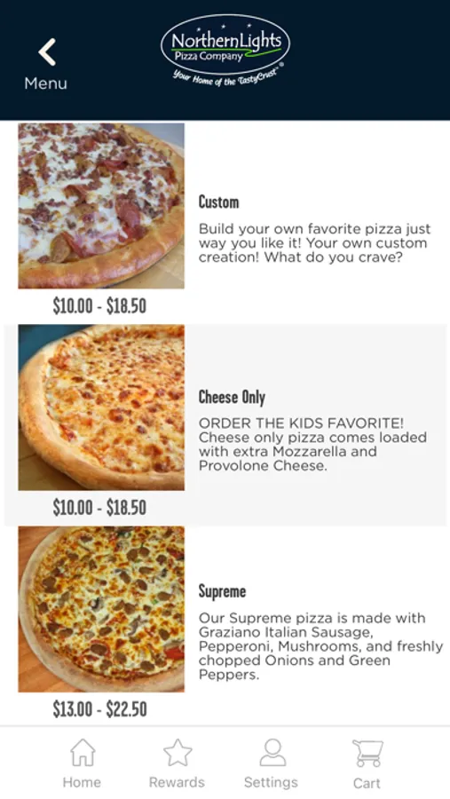 We offer a wide variety of pizza, pasta, appetizers, desserts & drinks for carryout or delivery! We start with our homemade pizza dough, choice of our zesty marinara or alfredo sauces and finally top your pizza creation with your favorite toppings. For full menu and special offers, please visit our website:www.northernlightspizza.com. We are locally owned and operated. We proudly serve the Des Moines, IA & Kansas City, MO areas. GREAT DEALS! GREAT MEALS! EVERYDAY!!