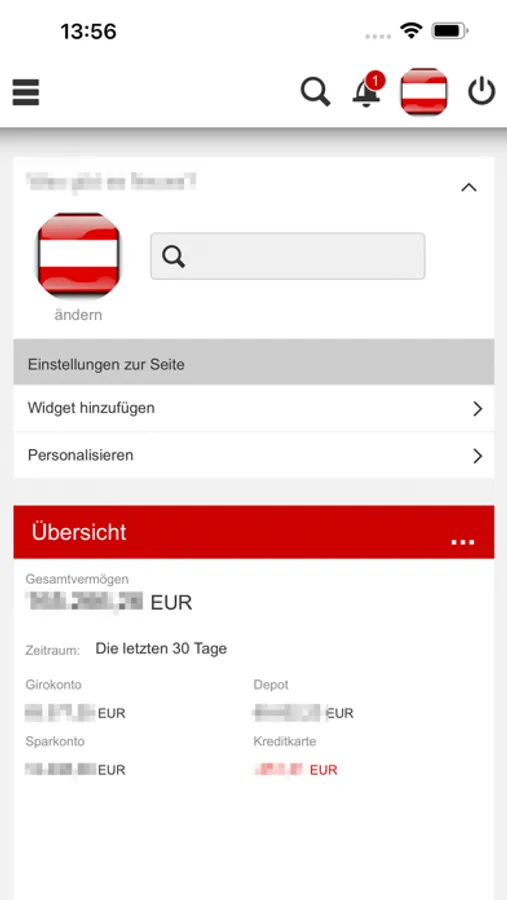 - Überblick über alle Konten bei der Generali Bank inklusive Quick-Check-Möglichkeit sowie einfacher Umsatzsuche