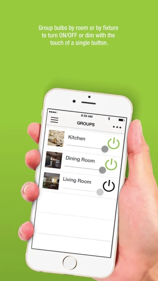 Group bulbs by room or moods (ie. movie night) and control them with a single command.
