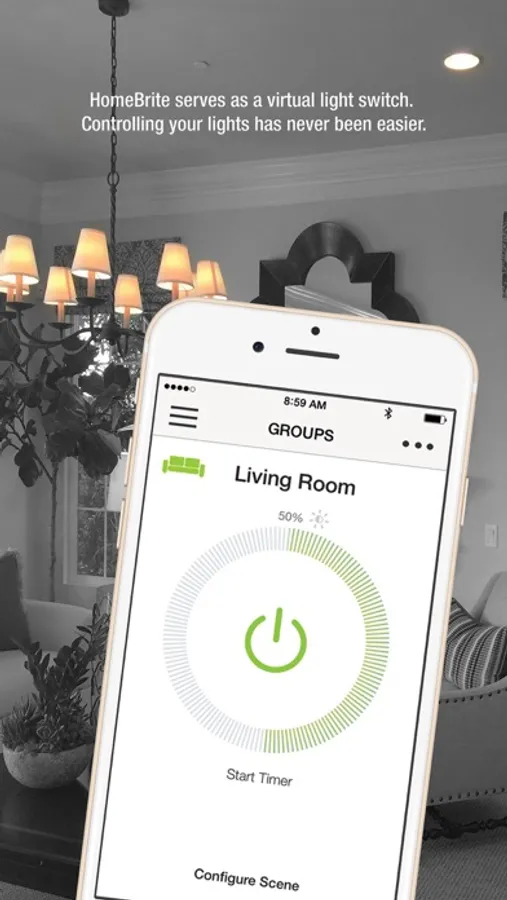 The HomeBrite app serves as a virtual light switch for your HomeBrite Bluetooth Smart LED bulbs. HomeBrite uses Bluetooth Mesh technology to connect bulbs throughout your entire home while allowing you to dim and power lights on and off, set schedules and timers, create scenes, and manage groups.