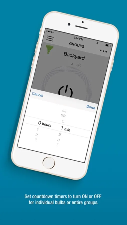 Set timers for individual bulbs and groups that countdown to turn on or off