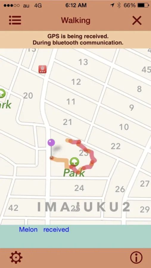 This app will consume power receives the GPS and Bluetooth in the background. Continued use of GPS and Bluetooth running in the background can dramatically decrease battery life. Please check the battery level,and use it. Moreover, please stop the GPS and Bluetooth by the STOP button after end of walking.