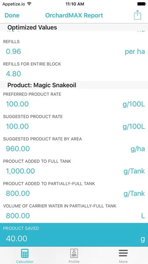 This app helps you make every drop count when airblast spraying apple trees. It uses the Crop-Adapted Spraying (CAS) model to adjust the pesticide rate-pre-planted-area to match the size, shape and density of the trees.