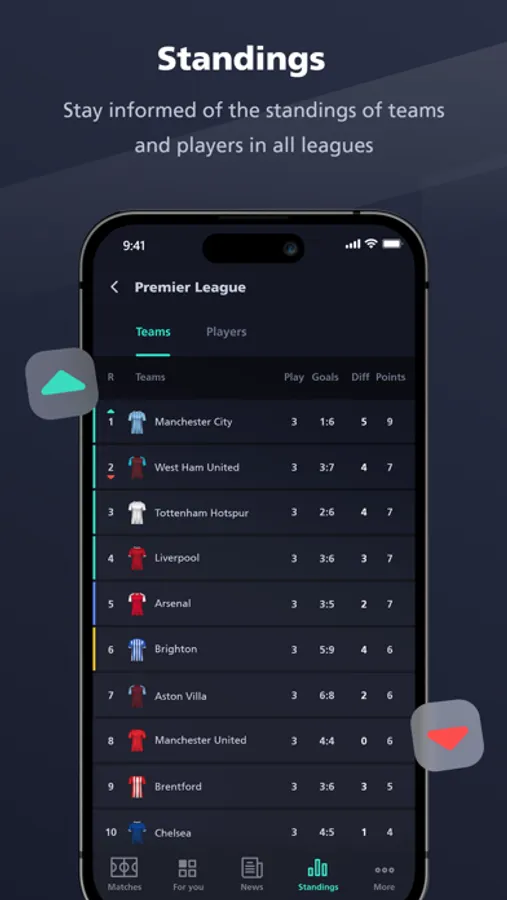 4 - Live teams and players ranking.