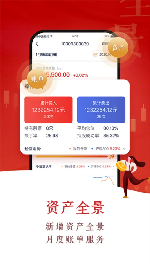 翼启航支持便捷的股票交易,基金买卖,也支持一键打新股新债、新股中签提醒,国债逆回购计算、ETF申赎,港股通、科创板交易、基金定投、指数定投等功能,随时随地变身股票操盘手,还为客户提供百万股票资金模拟炒股。