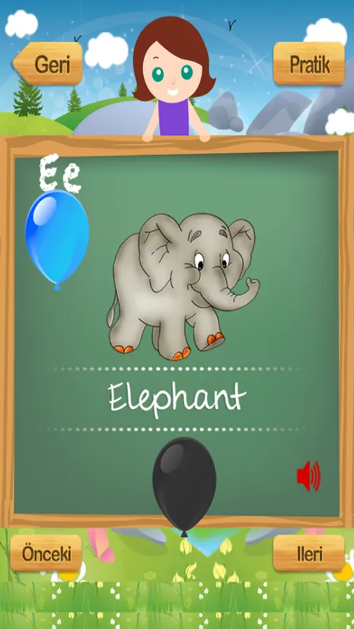 -Alıştırmalarla Pratik Yap (Bu bölüm çocukların kitabı öğrenmelerine ve kelimeleri cihaz üzerinde pratik etmelerine yardım edecek. Kelimeleri takip et ve kendi ABC'ni yazmayı öğren. )