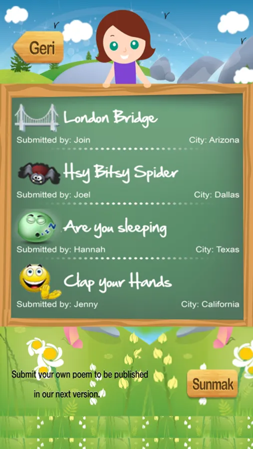 -Şiirler - Klasik anaokulu tekerlemelerinden oluşmuş iyi bir koleksiyon.Şarkıları söylerken çocuklarınızla birlikte eğlenin.