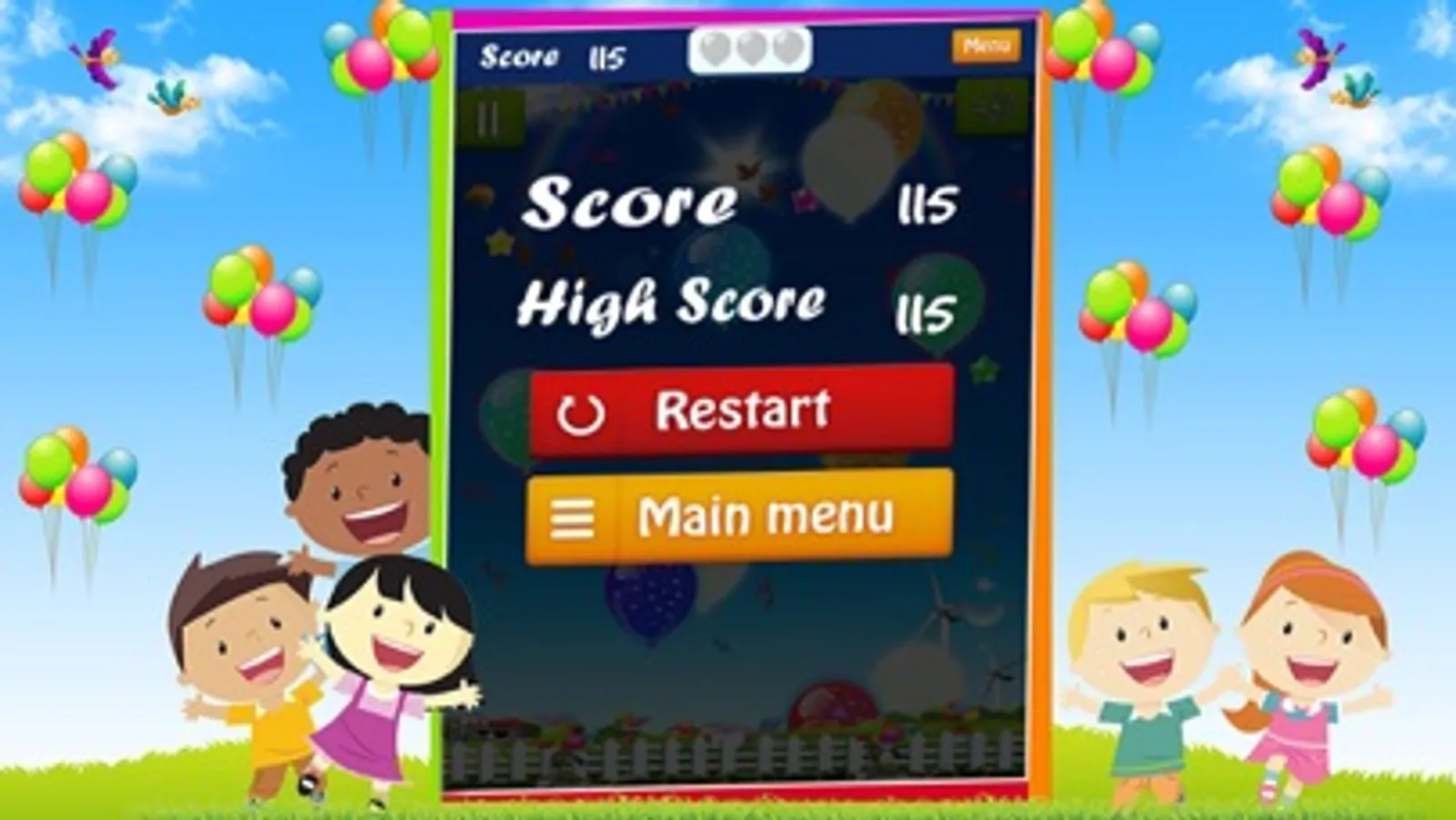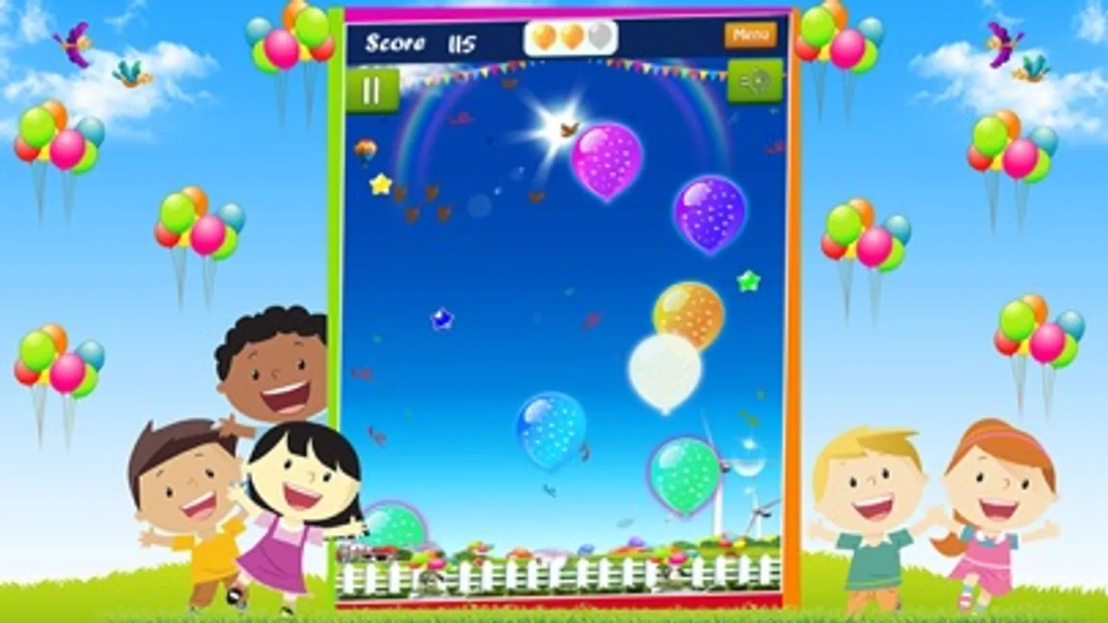 The first level is for little kids and toddlers where there are endless numbers of balloons and the kids can burst as many balloons as they want. The balloons are of a wide variety of colors and the little ones can pop as many as they want and listen to the realistic bursting sounds!