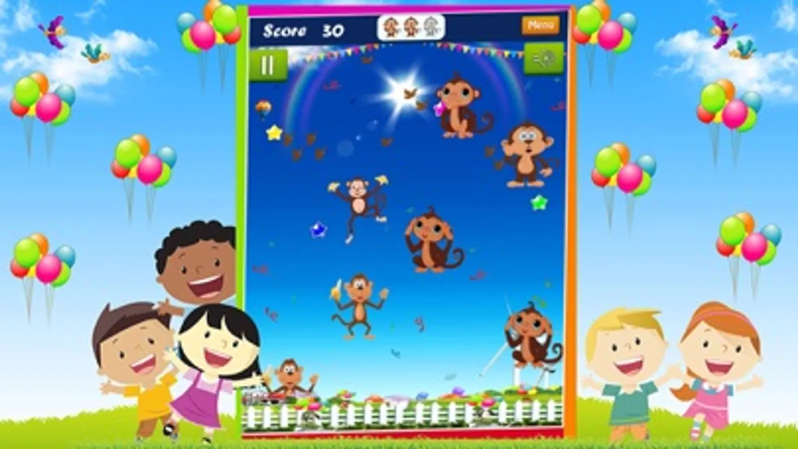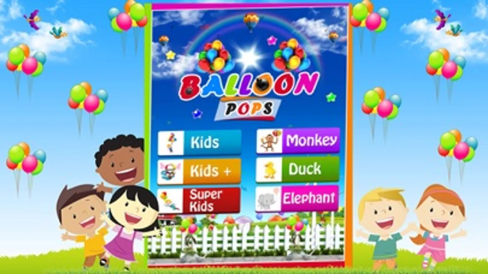 Try all the six levels of endless Balloon Popping Kids, Kids+,Super Kids,Monkey,Ducks and Elephant