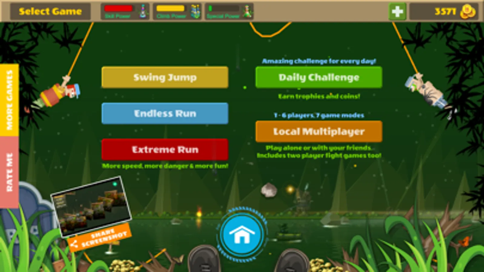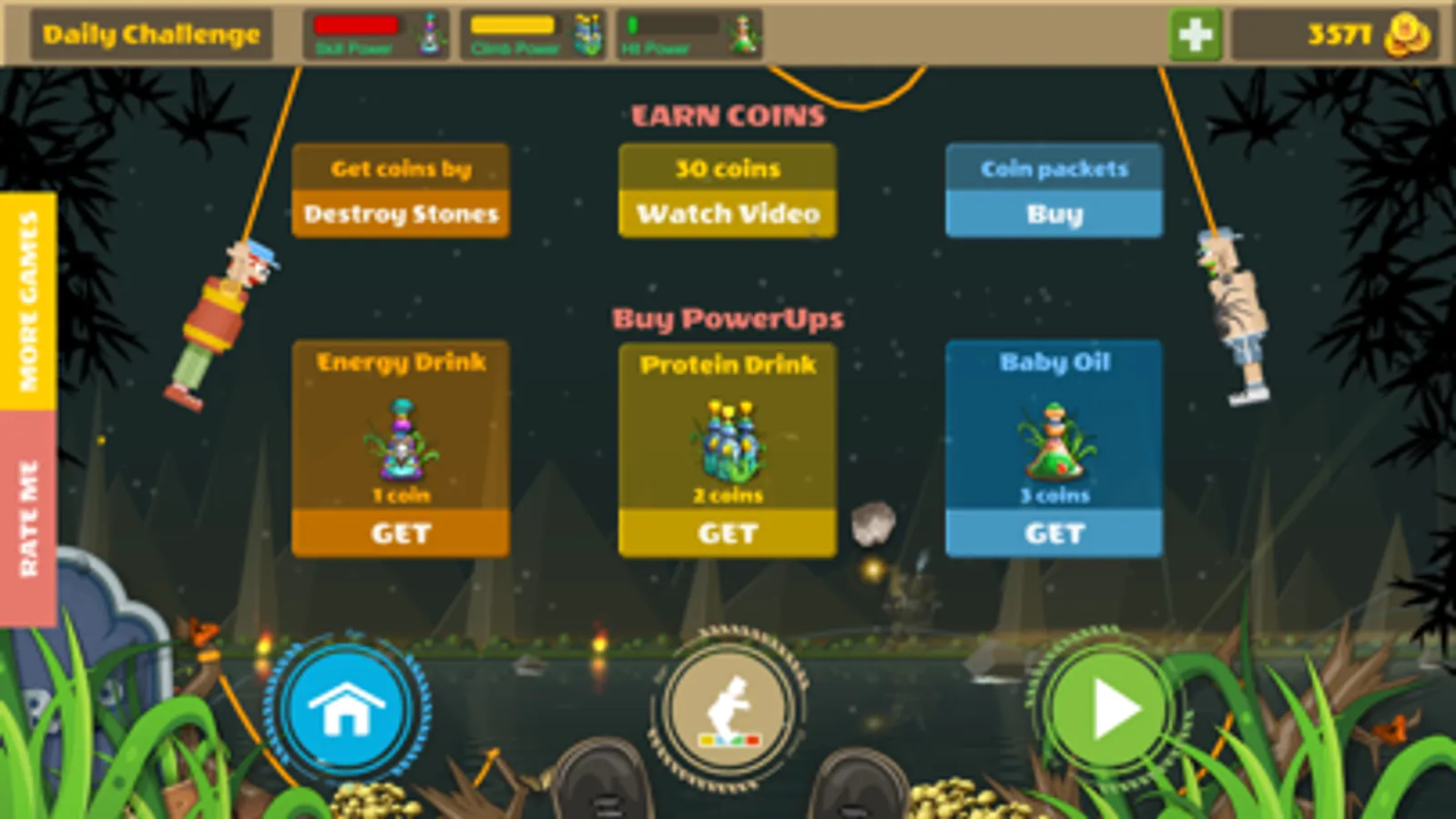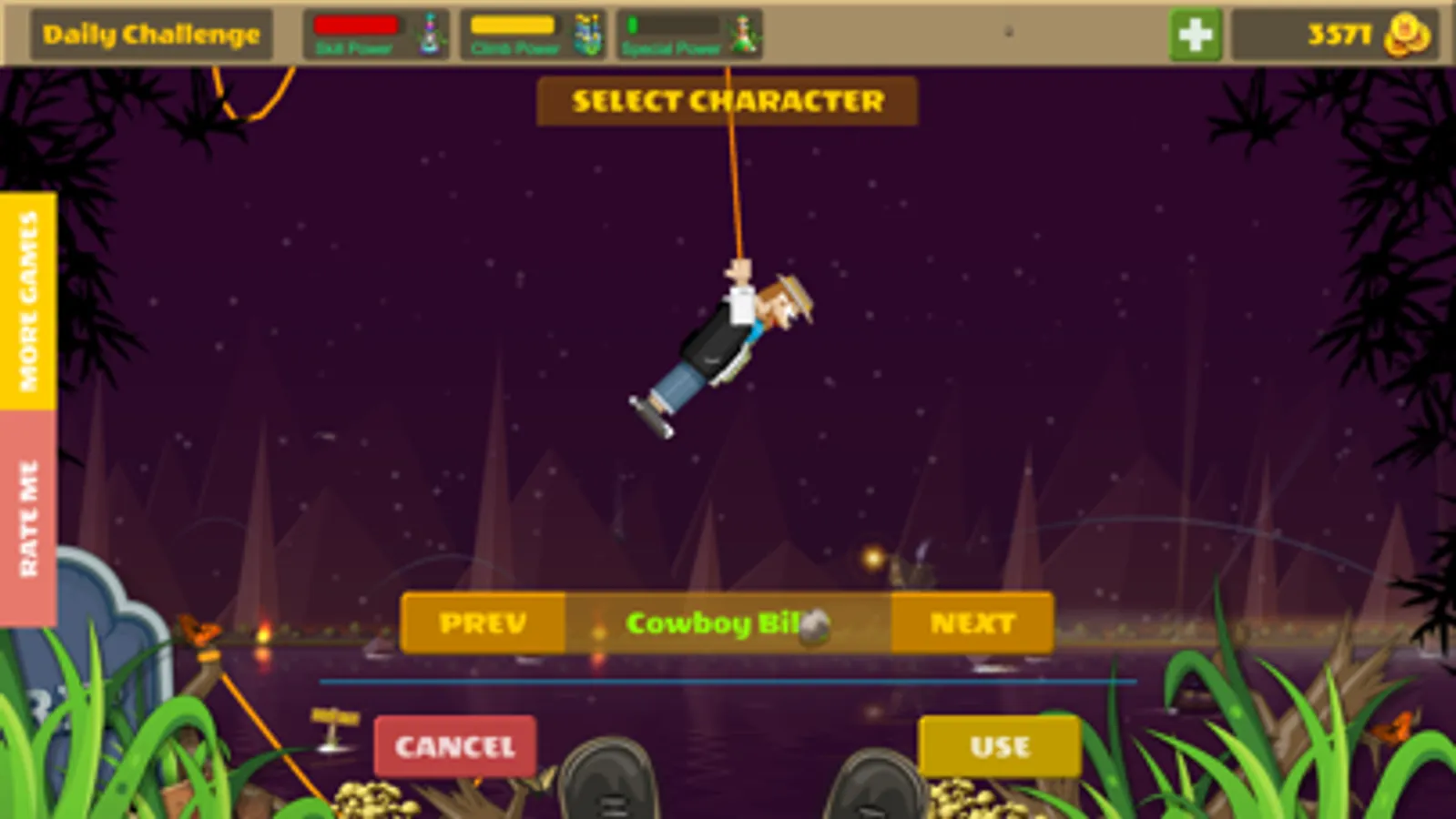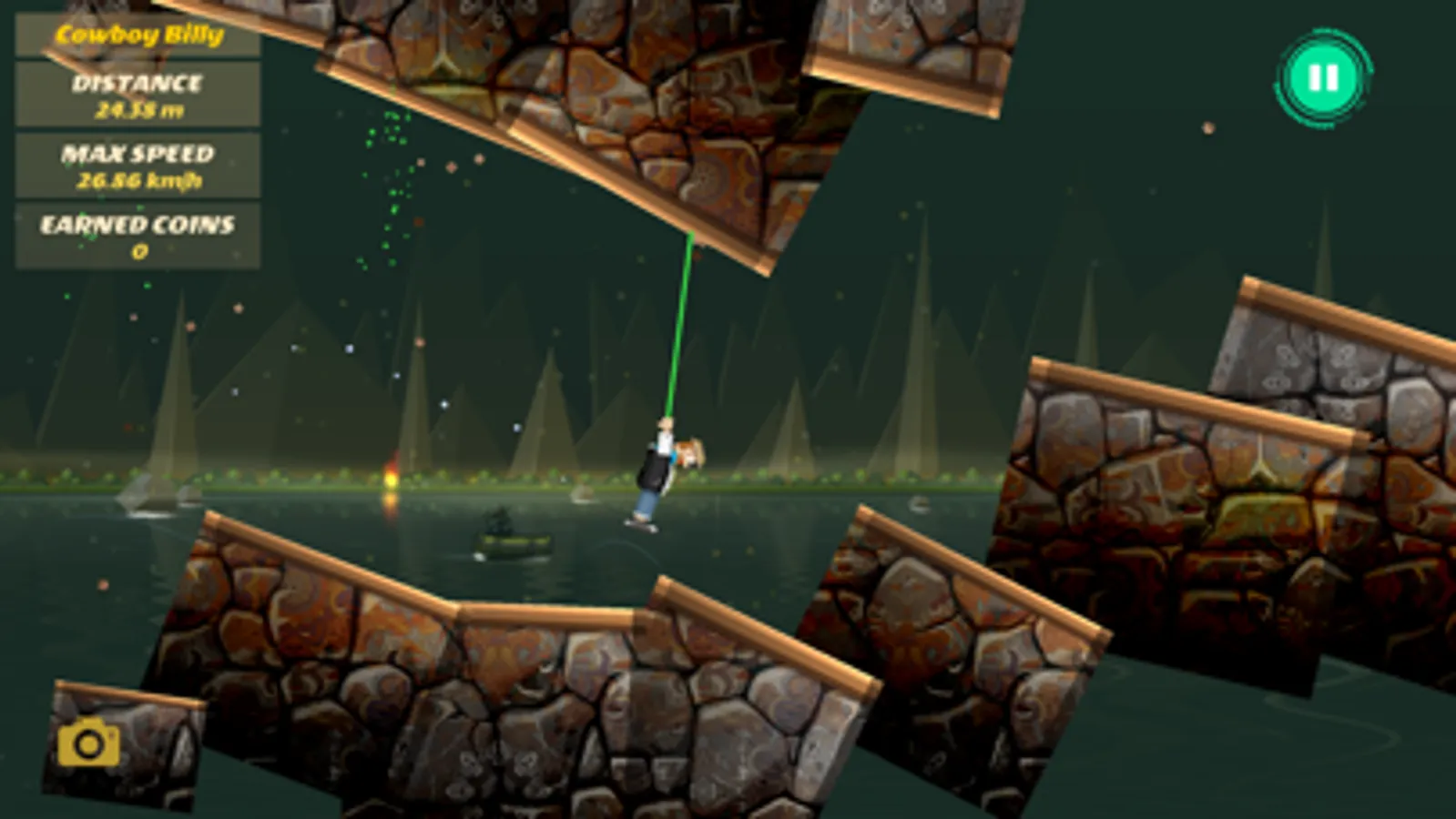 • Touch the phone screen to climb the rope up and the rope disappears when you remove the finger from the screen, by repeating this you will be able to get more speed.