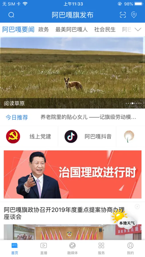阿巴嘎旗客户端是以“传播草原文化,唱响草原文明”为宗旨的信息传输平台。它以图文并茂的形式,迅速便捷地宣传当地经济社会各方面发展现状,同时加大蒙古族文化传播力度,倡导文明健康的生活方式与理念,推动精神文明建设掌中微传播。