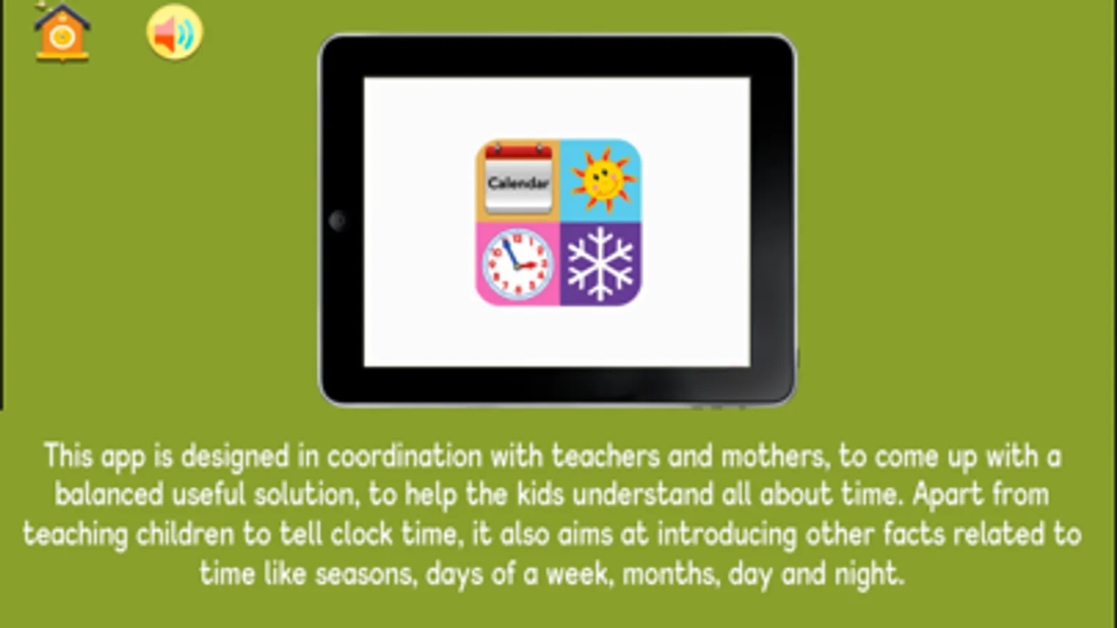 Apart from teaching children to tell clock time, It also aims at introducing at other facts related to time like Seasons, Days of a Week, Months, Day And Night.