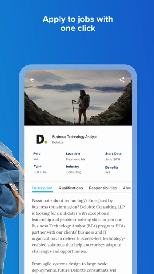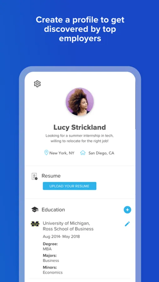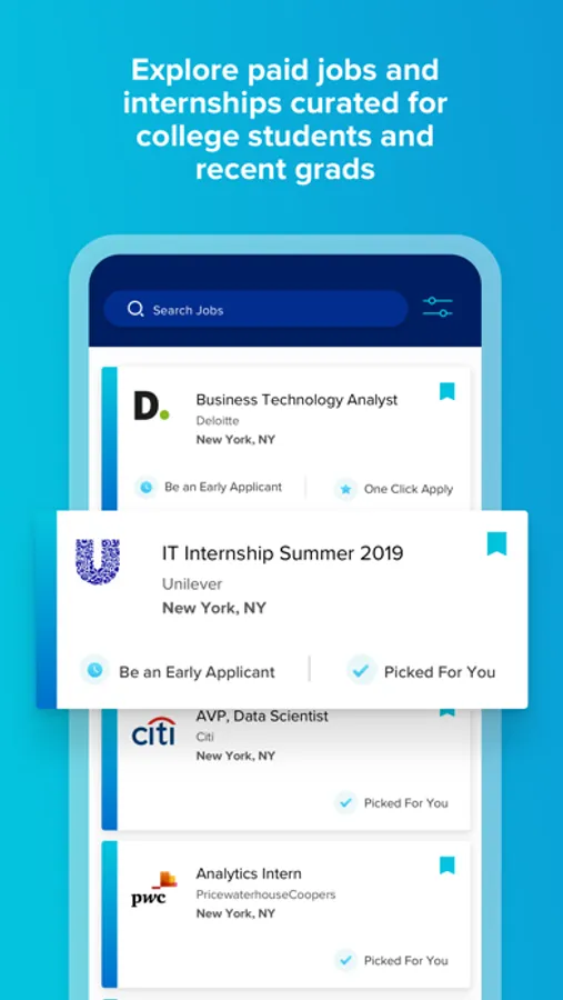 • Search, filter, and apply for any job or internship by location, industry, job type, and more.