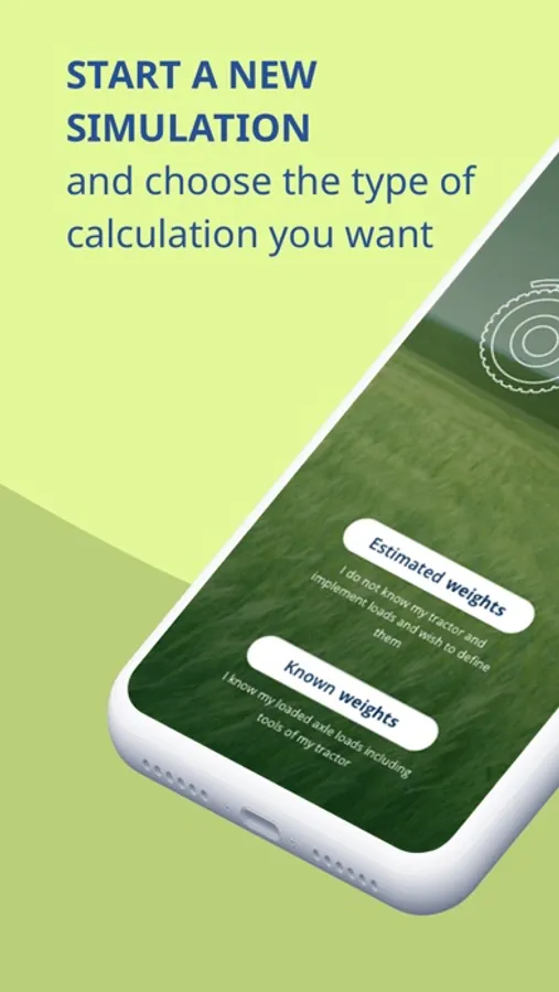 - Estimated loads: if you do not know the axle loads of your tractor / hitched implement configurations and want to define them using our database and load calculation models.