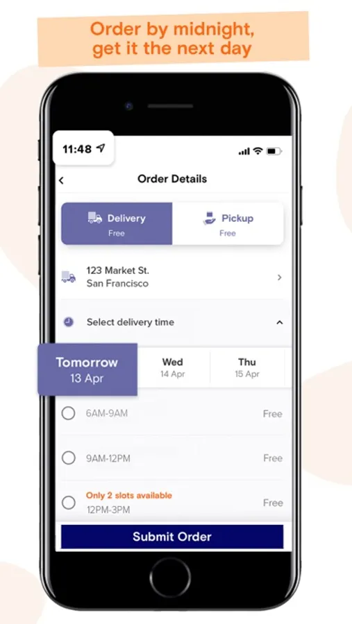 You can order up to midnight and have your order delivered the next day, unlike other broadline distributors that have cut-off time at 4pm.