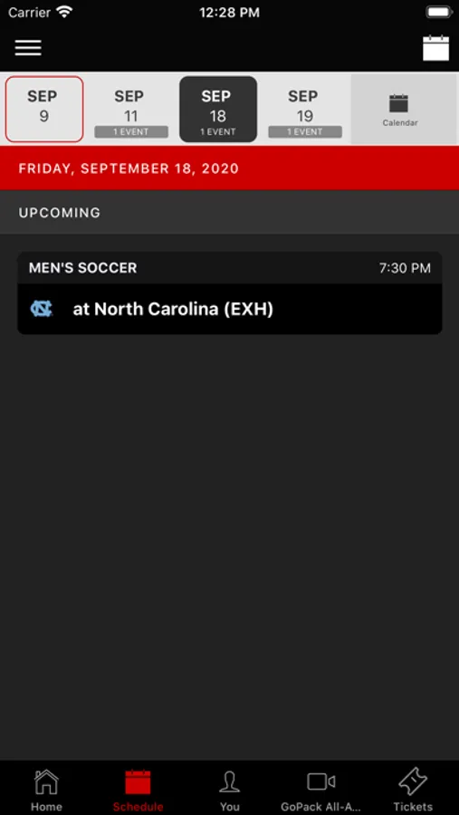 • Schedule: Schedule of upcoming games, and scores/stats of previous games