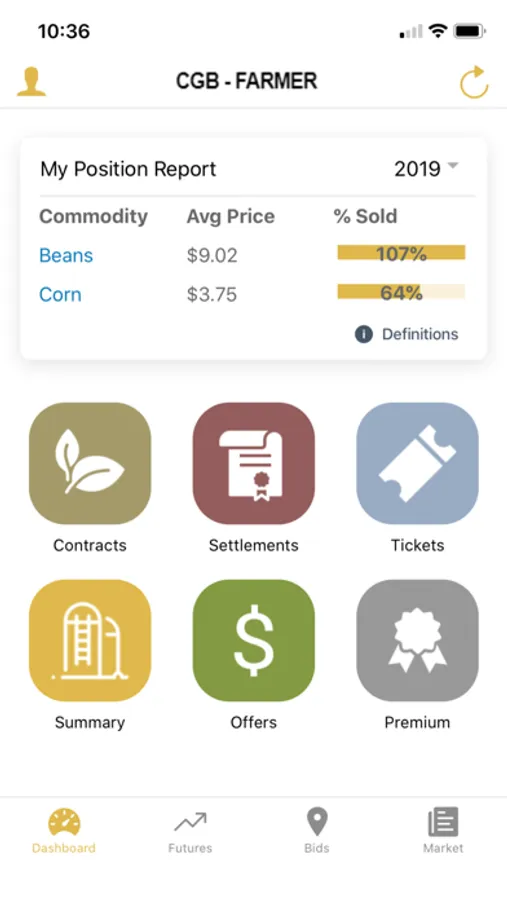 The CGB Grain Mobile app has been enhanced with a new, simple and clean interface with the features that matter most to our customers and origination team! With the new platform, you’ll enjoy push notifications when a new ticket or contract is available, electronic signatures from within the app, direct feed for Grain Market Today, and interactive weather map and radar! The basic items, like bidsheets, futures, contracts, settlements, and tickets are all still present with a new simplistic navigation, ensuring a great experience each and every time. Log in today!