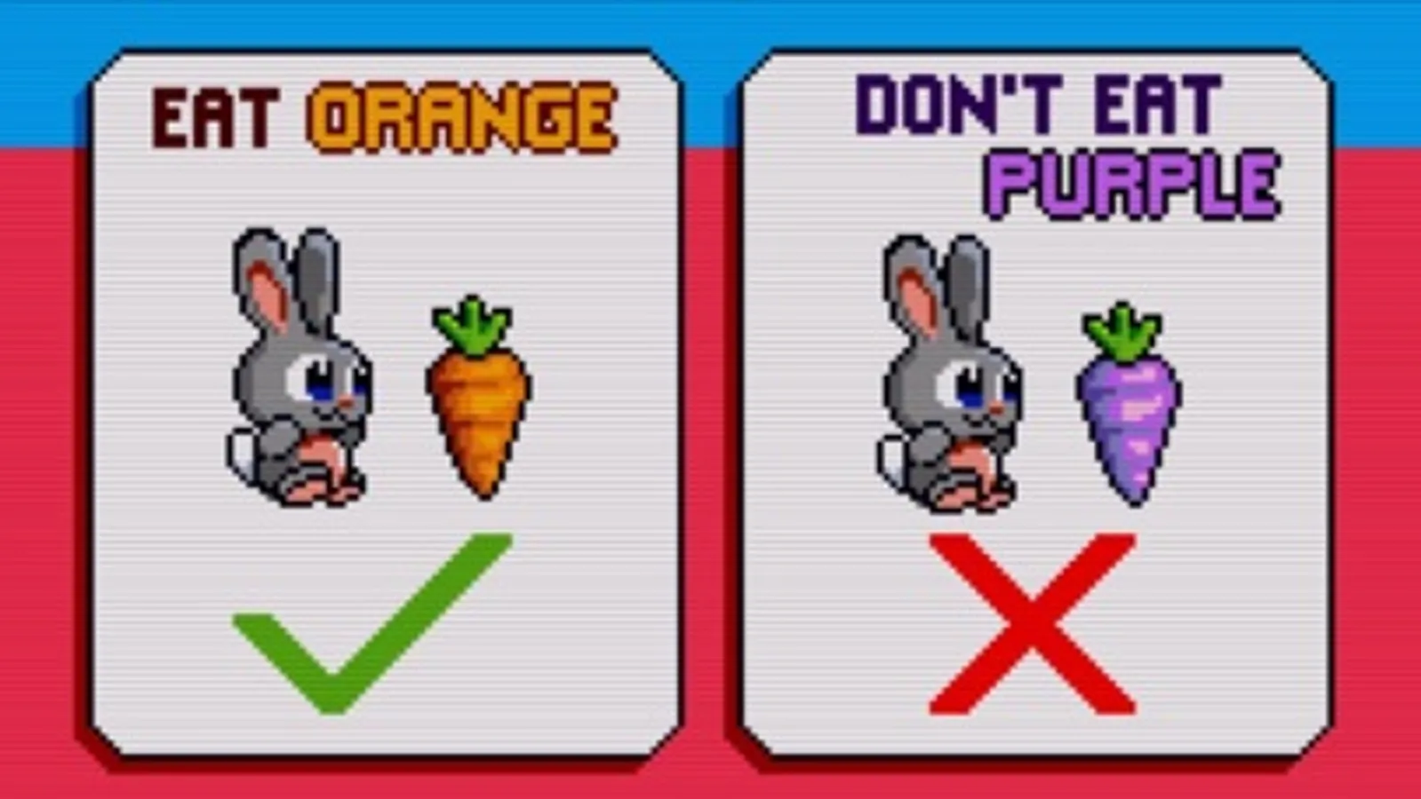 Help the cute bunny rabbit eat as many it can. But make sure you don't eat the purple carrots... or it's GAME OVER!